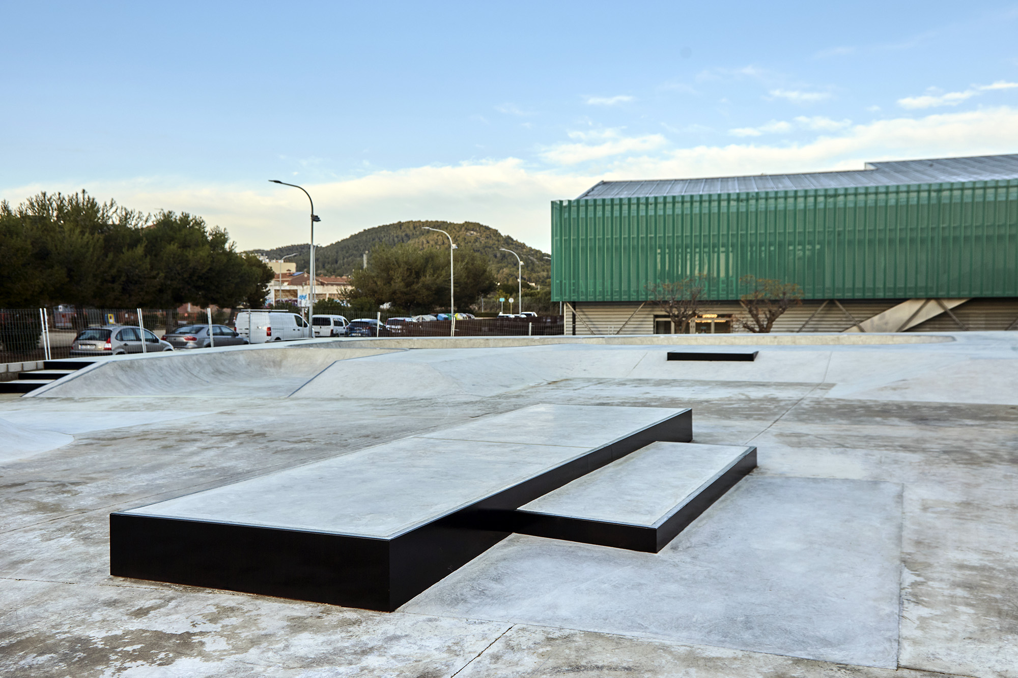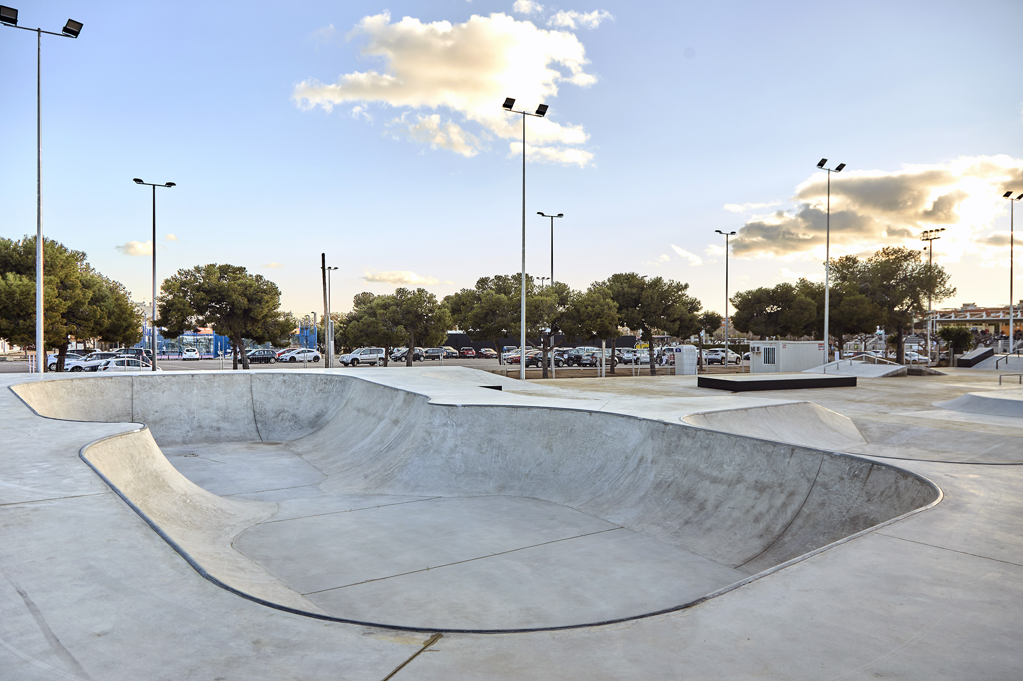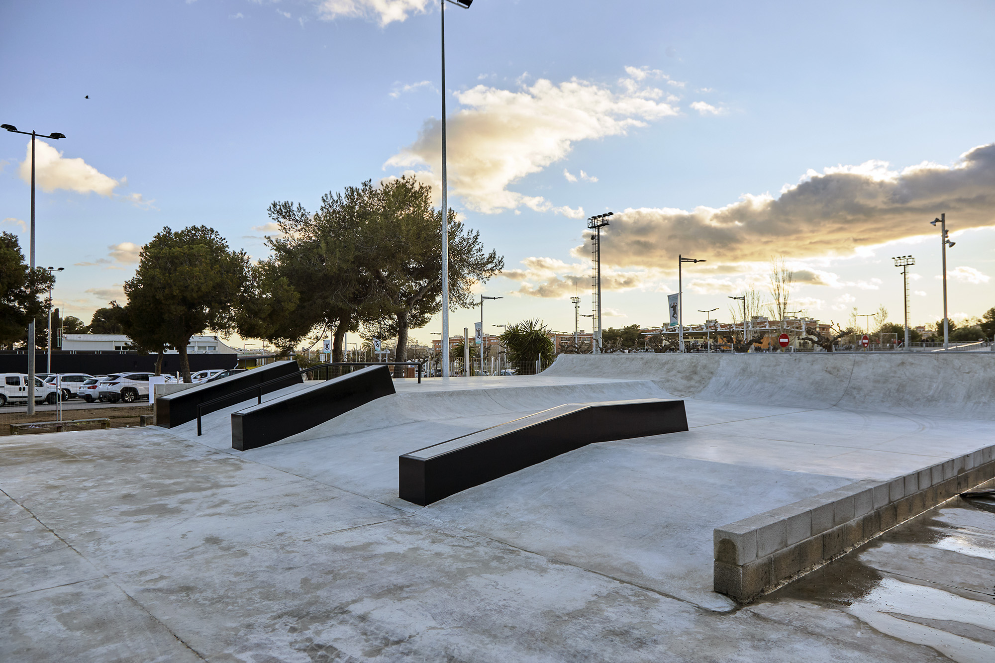 A large concrete creation to replace an old skatepark of Calafell and continue the movement of action sports in this seaside village of Spain. The wide space of existing 1300 concrete square meters is finally used to its full advantage as the new course covers the whole area. With a bowl and transition section on one end and classic street section (including a bigger section) on the other, the new Calafell skatepark is covering different obstacle heights and is suitable for both beginners and experienced riders. With an additional flow section and lower elements in the middle there is still enough room to breathe and gain as much speed as necessary. The street side of the park connects with the pavement creating a street spot as an extra. A place to express yourself in all the ways possible.